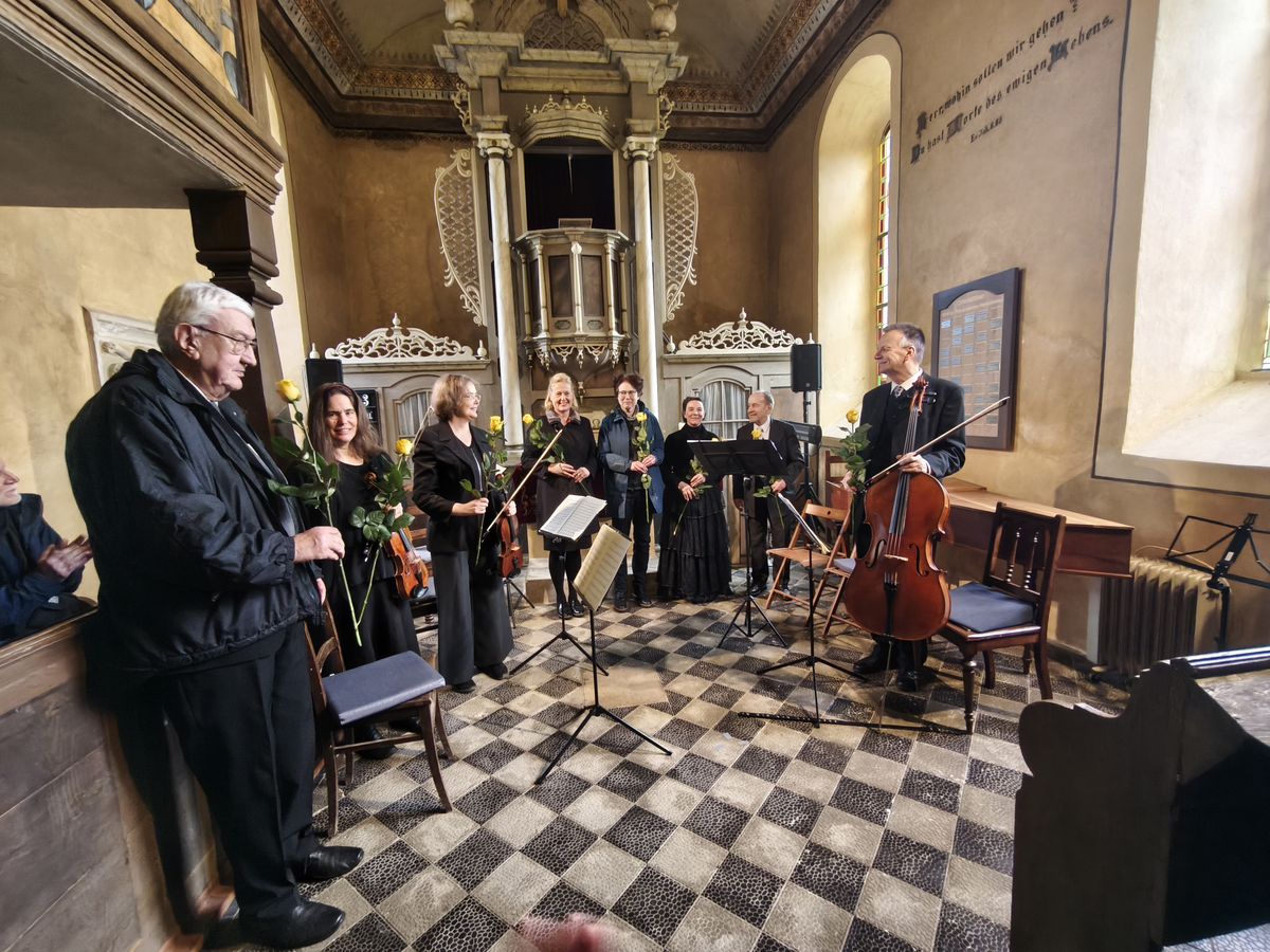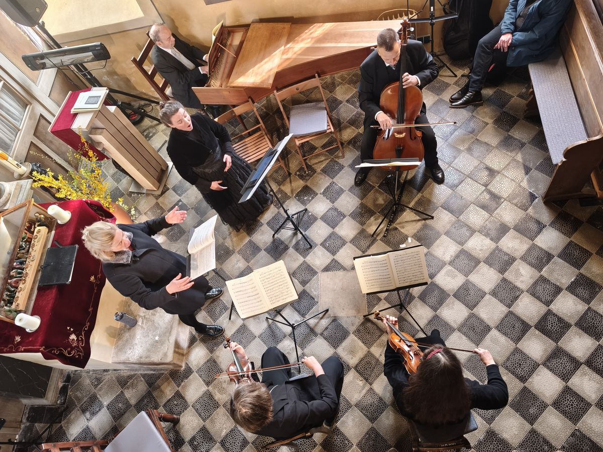 Man kann es getrost Tradition nennen, wenn am Karfreitag das Ensemble „Capelle Via Regia“ unter der Leitung von Claudia Maria Laule in unserem Kirchlein auftritt. Dann ist sie voll, und auch das gehört dazu: Es gibt viel Applaus am Schluss.