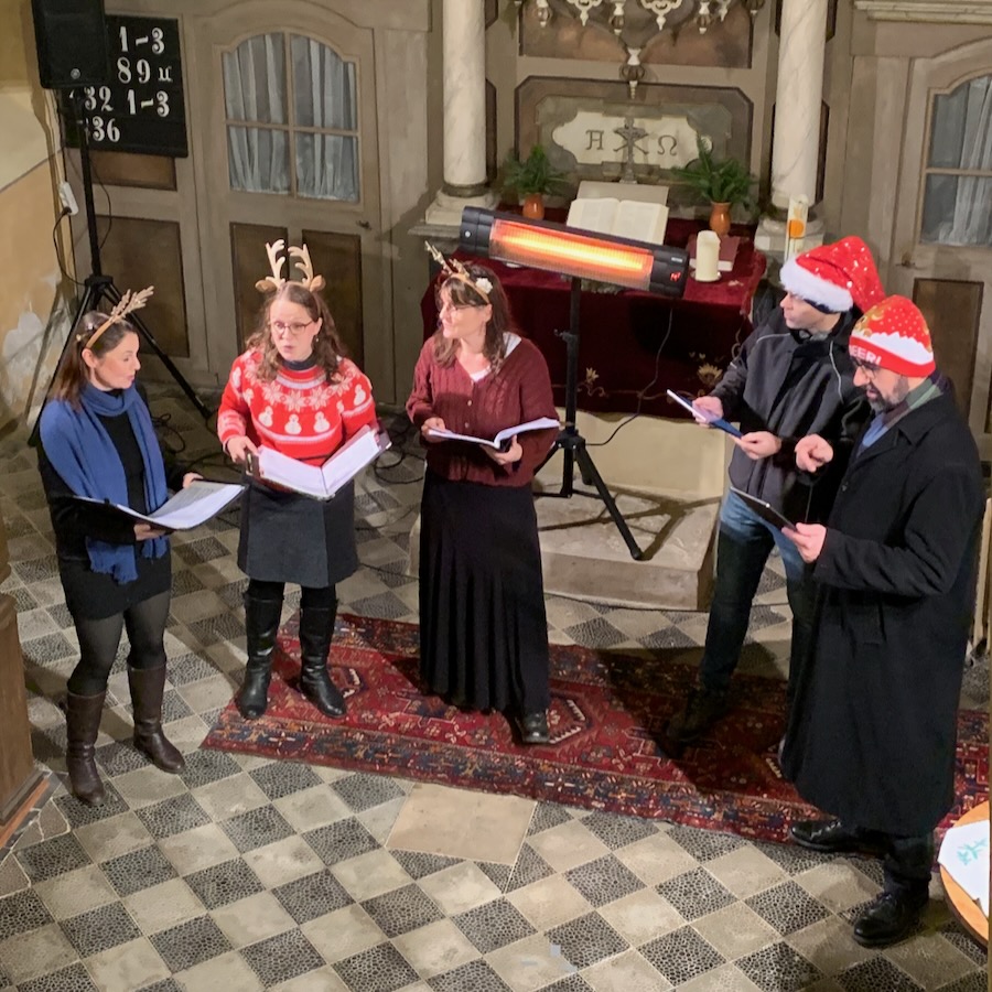 Die sechs sympathischen A-Cappella-Sänger:innen der „Clamores horribilis Lipsiensis“, die sich übersetzt „Leipziger Brüllschrecken“ nennen, singen im Gegenteil sehr angenehm und begeisterten uns am 4. Advent in der Rittergutskirche mit einem Adventskonzert der besonderen Art: Mit humorvollem Charme präsentierten sie eine ausgewogene Mischung aus traditionellen, internationalen und jazzigen Adventsliedern.