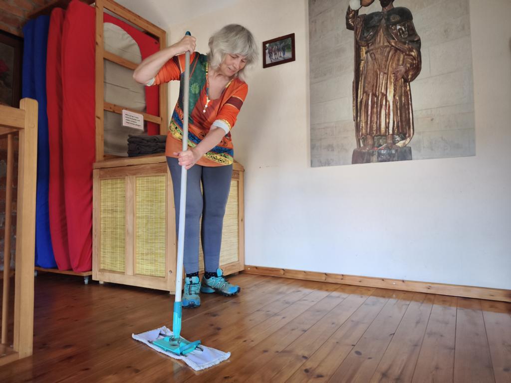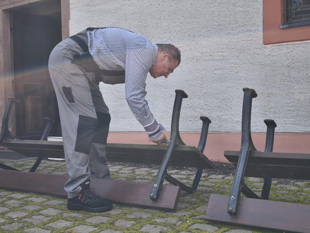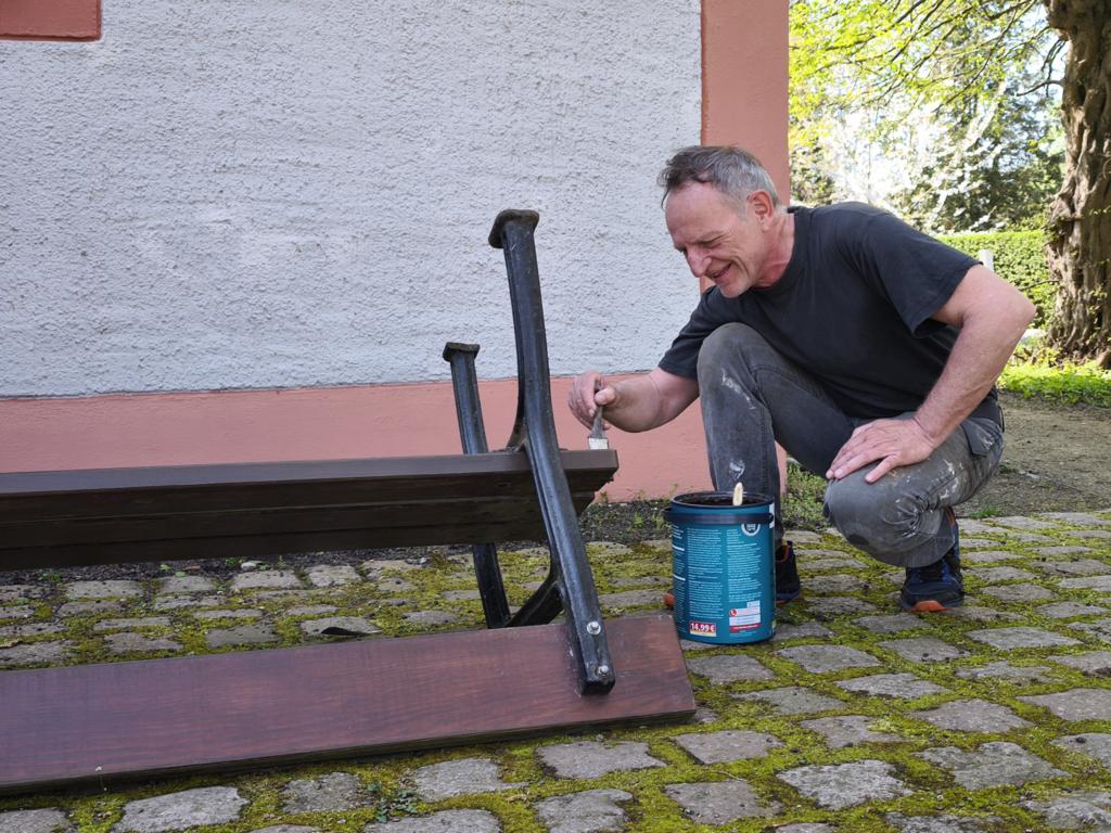 Etwas spät im Jahr zwar, aber gut gelaunt wurden der Winterstaub drinnen beseitigt, das Pflaster gekehrt, allzu üppig wachsendes „Grünzeug“ draußen in die Schranken gewiesen und alle Bänke draußen bekamen eine Inspektion und einen neuen Anstrich.