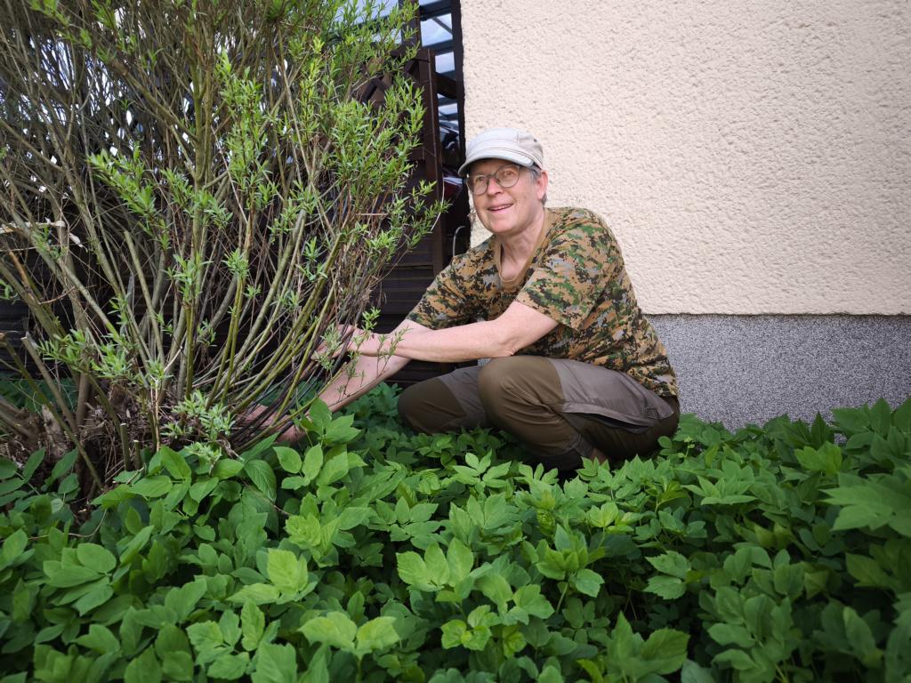 Die kleinen wilden Strohblümchen in den Pflasterritzen haben wir absichtlich stehen gelassen und ebenso den Färberwaid und den Mohn auf der Südseite. Dabei fiel der Blick auch auf unseren gerade so herrlich blühenden Birnbaum. Sieh an: die Pflanzaktion ist schon wieder 10 Jahre her! Bei der Pflanzung hatte das Bäumchen bereits acht Jahre in der Baumschule des LebensGut Cobstädt e.V. hinter sich, wird also in diesem Jahr volljährig. Im Sommer 2025 bot die ‚Gräfin von Paris‘ schon ein paar Kostproben. Wir sollten hier vielleicht im nächsten Herbst mal den Nachbarbäumen ein paar Äste einkürzen, damit die ‚Gräfin‘ sich noch besser entfalten kann.